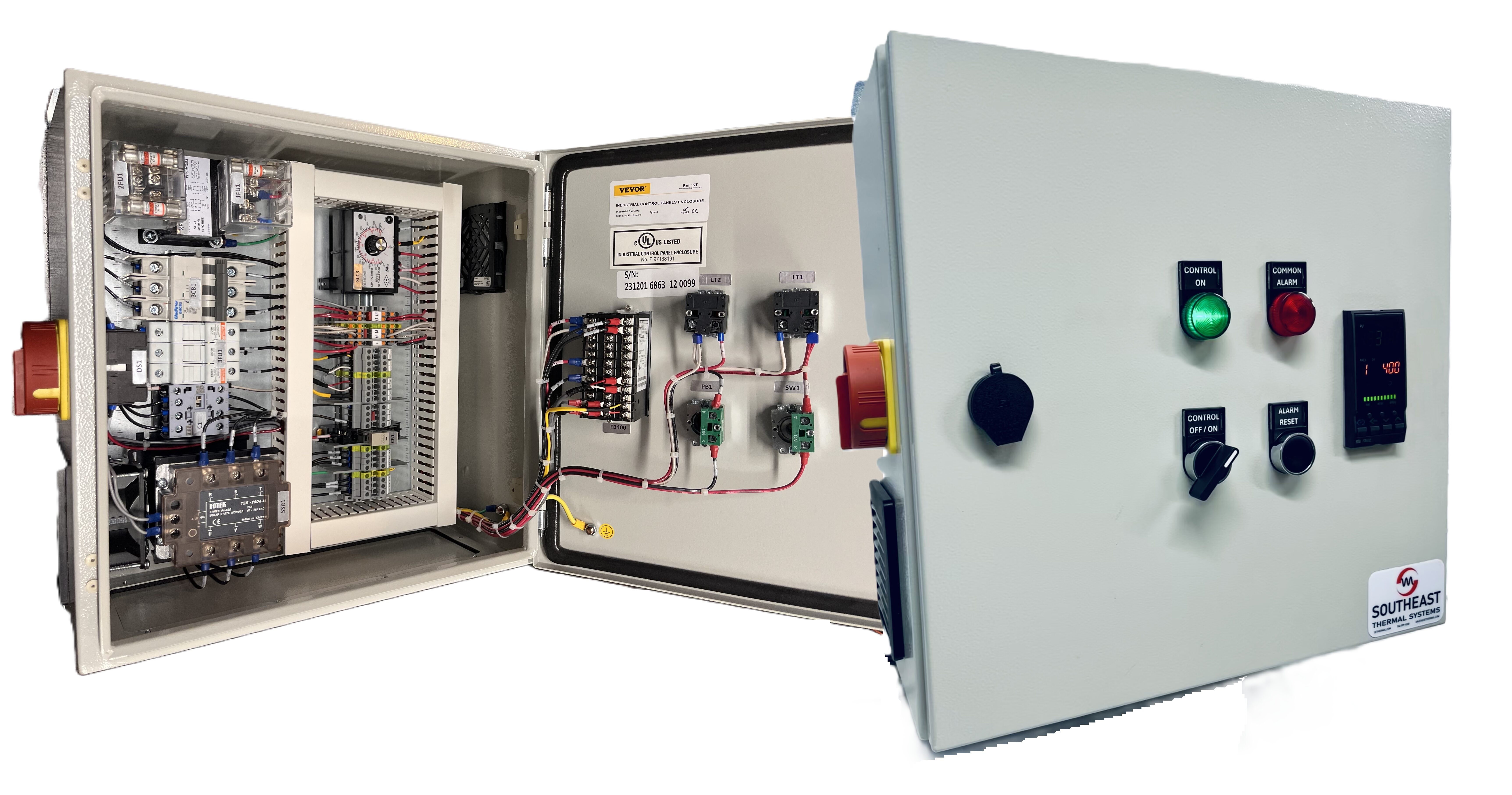 Southeast Thermal System’s first step in building a control panel is to review the customer’s documents and to identify any potential discrepancies and/or any possible cost saving options. Once a panel is approved STS ensures that the panels are made of the best quality and made exactly to customer specifications. Please contact our technician to assist with designing the proper control panel to meet your requirements.