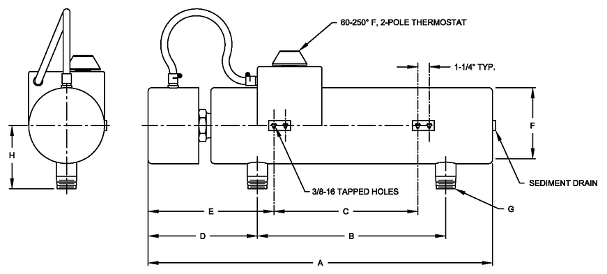 Screw Plug Circulation Heaters feature Incoloy® 840 sheath for the widest coverage of applications and temperatures, NEMA 4 moisture tight enclosure, sediment drain, and NPT inlet/outlet.