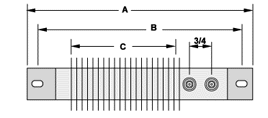 A-B-C dimensions; 1″ width specify 1/4″ or