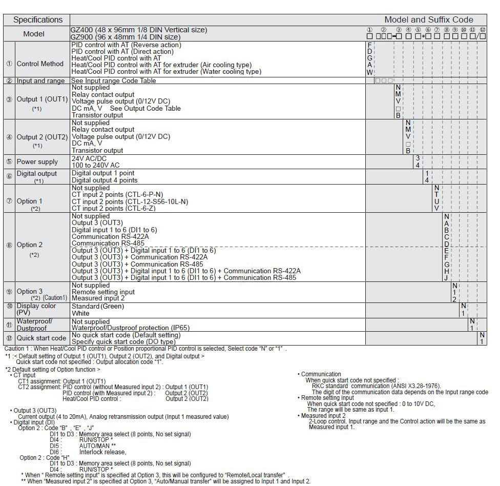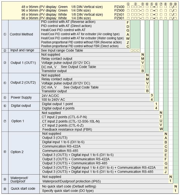 Temperature Process PZ400 / PZ900 MODEL NUMBER BUILDER