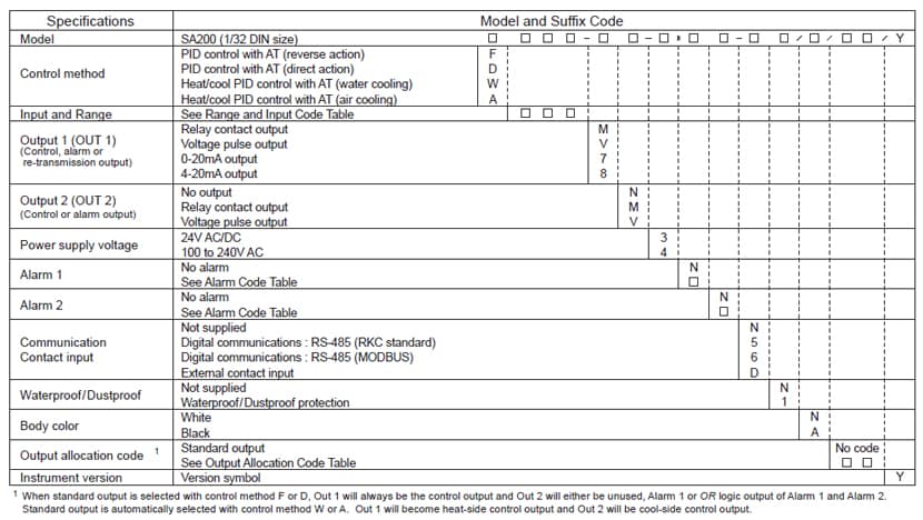 TEMPERATURESA200 SERIES PART NUMBER CONFIGURATOR